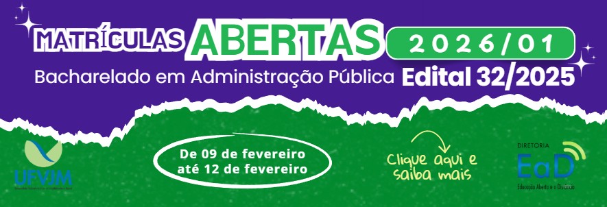 Matrículas Abertas – Adminstração Pública 2026/1 Notícias 6 de fevereiro de 20266 de fevereiro de 2026Raquel Arruda Atenção candidatos aprovados no processo EaD para o curso de Administração Pública 2026/1: Fiquem atentos ao cronograma de matrículas.