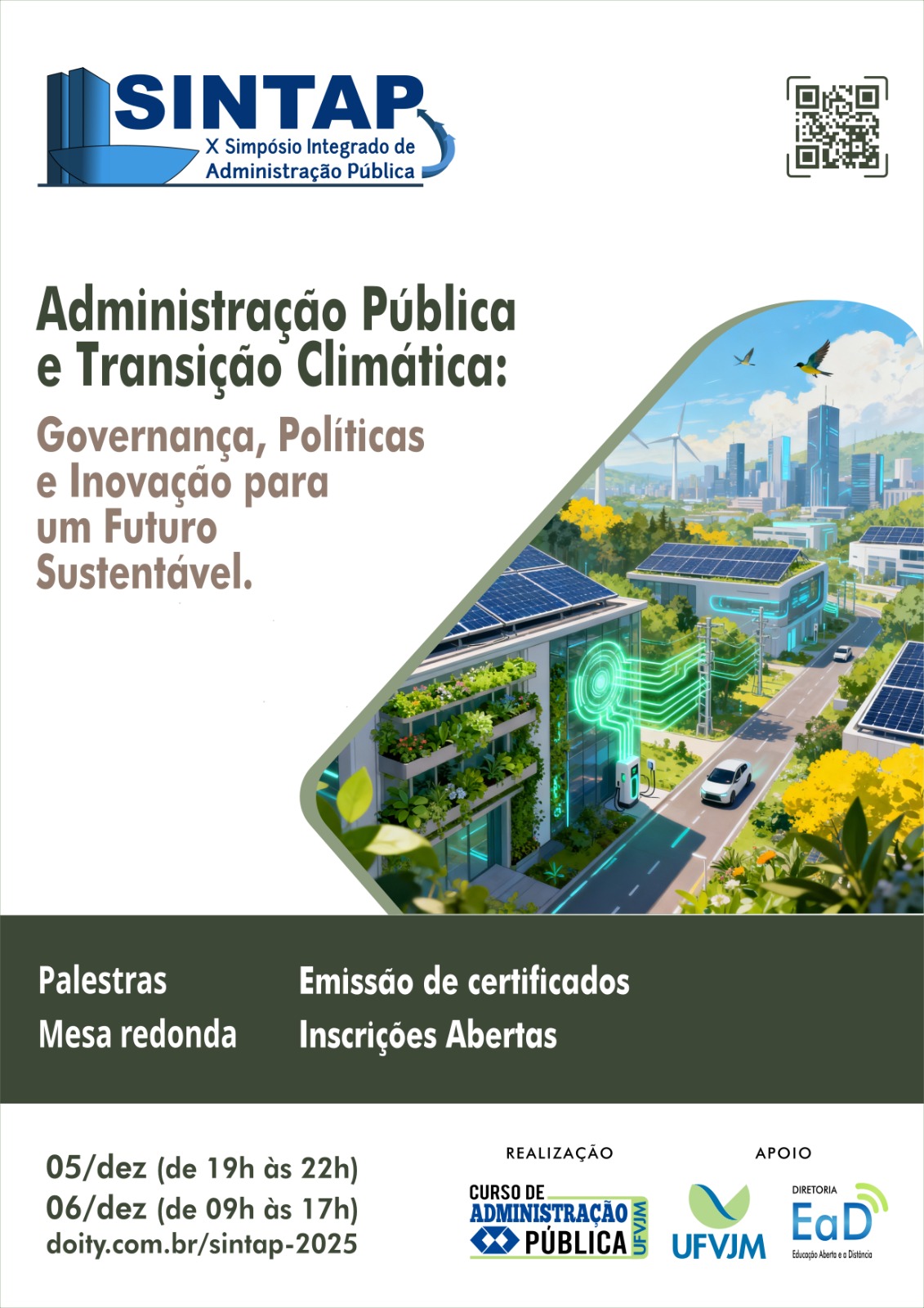 Estão abertas as inscrições para o X SINTAP – Simpósio Integrado de Administração Pública, promovido pelo Bacharelado em Administração Pública da DEAD/UFVJM.